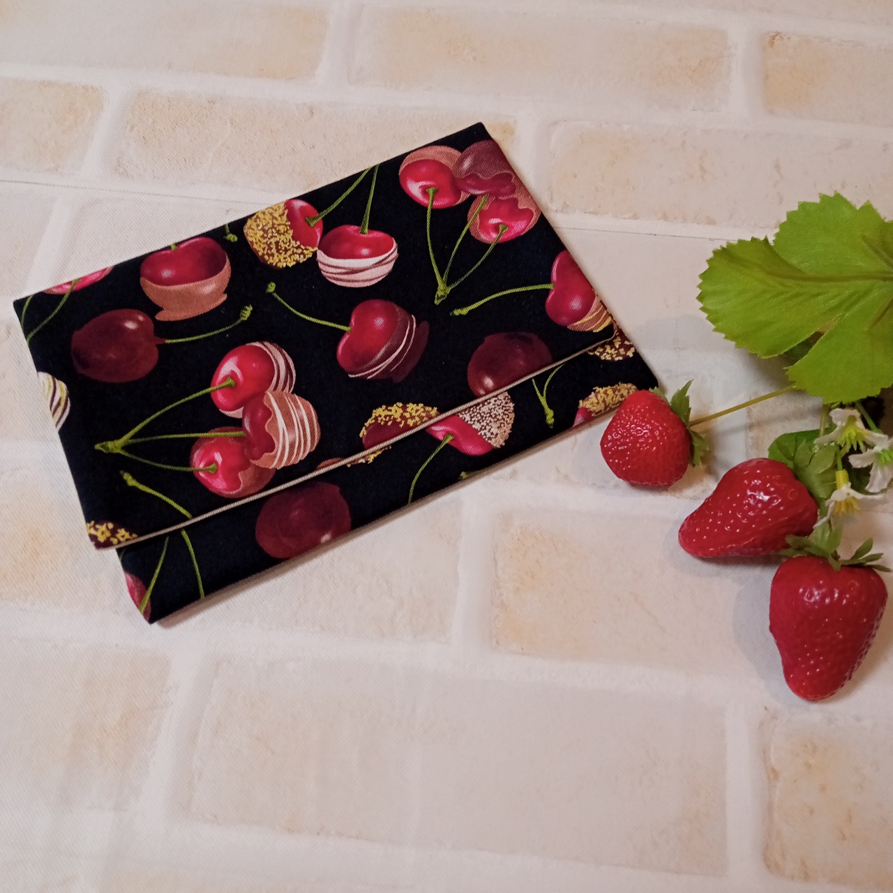 黒地にダークチェリー柄の
